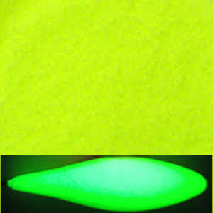Objeto alongado verde fluorescente emitindo luz com fundo amarelo e preto